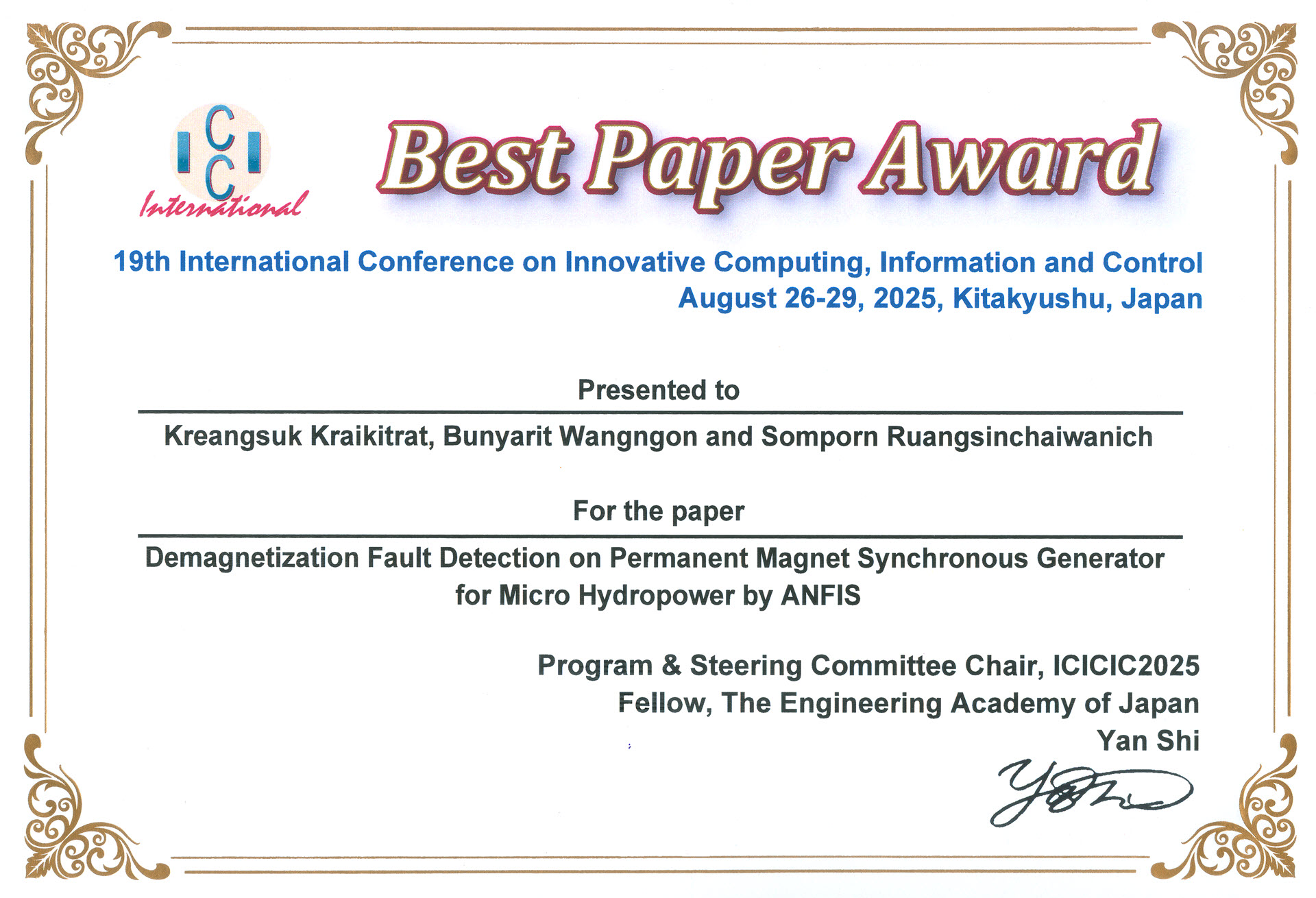 เนื่องในโอกาสได้รับรางวัล Best Paper Award จากการนำเสนอผลงานในการประชุมวิชาการ ระดับนานาชาติ ณ ประเทศญี่ปุ่น (19th International Conference on Innovative Computing, Information and Control (ICICIC2025)) เมื่อวันที่ 26-29 สิงหาคม 2568