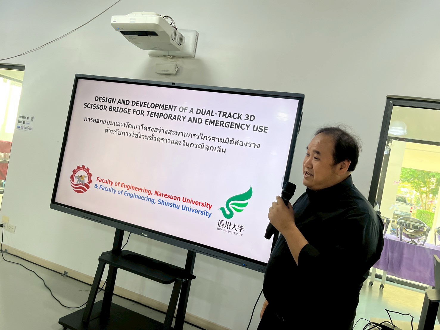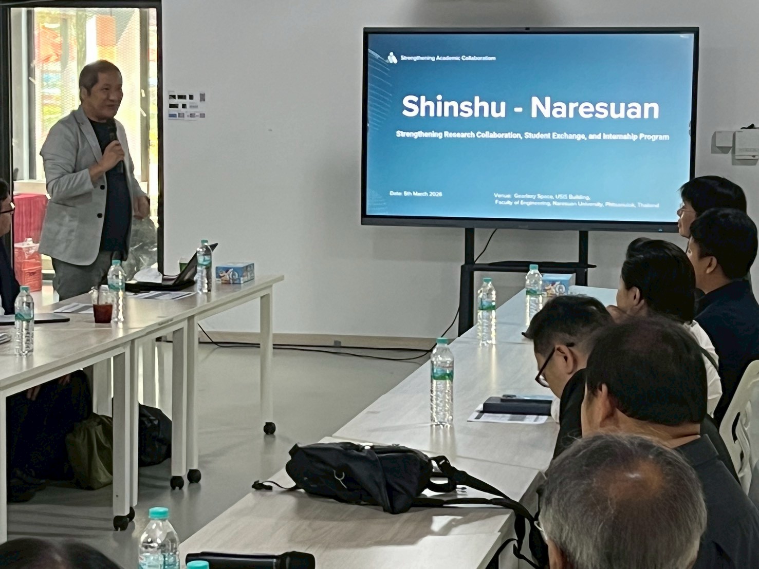 ในการประชุมครั้งนี้ ได้รับเกียรติจาก Prof. Dr. Toshio Sakai ที่ปรึกษาอธิการบดีและผู้ช่วยคณบดีด้านความร่วมมือระหว่างประเทศของ Shinshu University และ Assoc. Prof. Dr. Prarinya Siritanawan อาจารย์ประจำ Graduate School of Science and Technology, Department of Engineering, Informatics and Interdisciplinary Systems Division เข้าร่วมประชุมเพื่อติดตามความก้าวหน้าโครงการวิจัย ตลอดจนหารือแนวทางการดำเนินโครงการแลกเปลี่ยนทางวิชาการและวัฒนธรรมร่วมกันระหว่างคณะวิศวกรรมศาสตร์ของทั้งสองมหาวิทยาลัย ซึ่งมีกำหนดจัดขึ้นในช่วงเดือนสิงหาคม–กันยายน พ.ศ. 2569 ซึ่งในโอกาสนี้ Prof. Dr. Kazumasa Hanaoka ซึ่งเป็น Visiting Professor จาก Ritsumeikan University ประเทศญี่ปุ่น ได้เข้าร่วมสังเกตการณ์การประชุมติดตามความก้าวหน้าโครงการวิจัยและการหารือแผนดำเนินโครงการแลกเปลี่ยนทางวิชาการและวัฒนธรรมระหว่าง คณะวิศวกรรมศาสตร์ มหาวิทยาลัยนเรศวร กับ คณะวิศวกรรมศาสตร์ Shinshu University อีกด้วย และขอข้อมูลแผนการดำเนินโครงการแลกเปลี่ยนทางวิชาการและวัฒนธรรมไปประชาสัมพันธ์ให้กับนักศึกษาที่ Ritsumeikan University ที่สนใจเข้าร่วมโครงการ ฯ ดังกล่าวข้างต้น